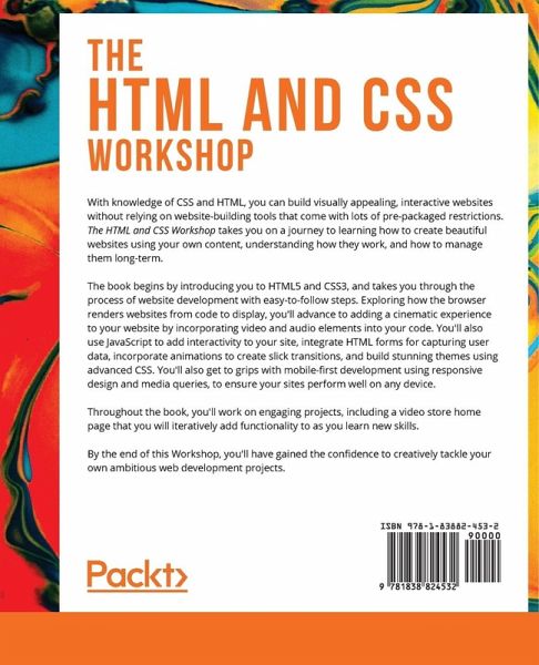 The HTML and CSS Workshop equips you with the practical knowledge to create modern responsive websites. From mastering simple HTML markup and CSS tags, through to integrating media queries and animations to create a rich, engaging user experience, you'll build your skills with the help of hands-on examples and activities.