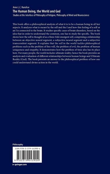 This book offers a philosophical analysis of what it is to be a human being in all her aspects. It analyses what is meant by the self and the I and how this feeling of a self or an I is connected to the brain. It studies specific cases of brain disorders, based on the idea that in order to understand the common, one has to study the specific. The book shows how the self is thought of as a three-fold emergent self, comprising a relationship between an objective neural segment, a subjective neural segment and a subjective transcendent segment. It explains that the self in the world tackles philosophical problems such as the problem of free will, the problem of evil, the problem of human uniqueness and empathy. It demonstrates how the problem of time also has its place here. For many people, the world includes ultimate reality; hence the book provides an analysis and evaluation of different relationships between human beings and Ultimate Reality (God). The book presents an answerto the philosophical problem of how one could understand divine action in the world.