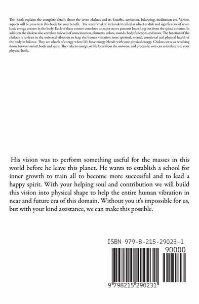 This book explains the complete details about the seven chakras and its benefits, activation, balancing, meditation etc. Various aspects will be present in this book for your benefit. . The word "chakra" in Sanskrit called as wheel or disk and signifies one of seven basic energy centers in the body. Each of these centers correlates to major nerve patterns branching out from the spinal column. In addition the chakras also correlate to levels of consciousness, elements, colors, sounds, body functions and more. The function of the chakras is to draw in the universal vibration to keep the human…mehr