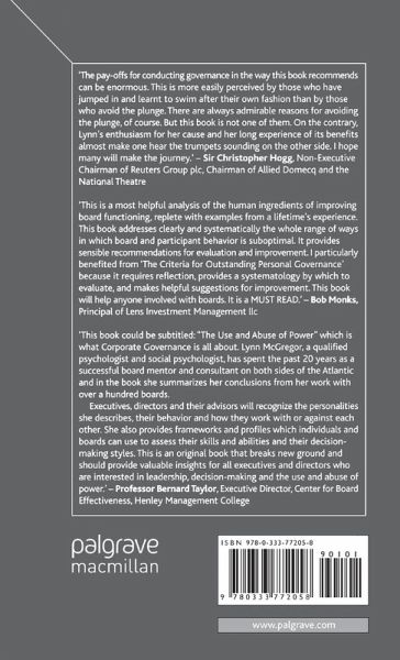 Corporate governance has become a crucial issue for many companies and organisations. Much has been written on the formal systems but McGregor uncovers the human element - examining personal and interpersonal governance. Using vivid cases and examples she provides guidance and checklists for both individuals and companies and raises key questions about the governance role of companies.