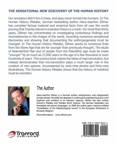 Our ancestors didn't live in trees, and apes never turned into humans. In The Human History Mistake, German bestselling author Hans-Joachim Zillmer has compiled factual material and empirical facts from all over the world proving that Charles Darwin's evolution theory is a myth. For more than thirty years, Zillmer has concentrated on investigating contentious findings and inconsistencies in the images of the world, recording numerous sensational discoveries and showing that documenting the anthropogenesis must be changed. In The Human History Mistake, Zillmer points to numerous finds from the Stone Age that are far younger than previously thought. The skulls of Neanderthal man and of people from the Paleolithic age must be made "younger" by as much as 27,000 years to the age of a few thousand or even hundreds of years. This science book rejects the ideas of macroevolution, but instead demonstrates that microevolution plays a much larger role in the creation of new species. Accompanied by sixty-nine photos and forty-nine illustrations, The Human History Mistake shows that the history of mankind must be rewritten.