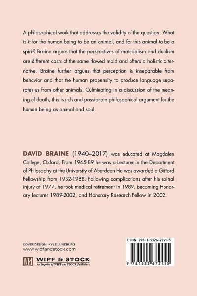 A philosophical work that addresses the validity of the question: What is it for the human being to be an animal, and for this animal to be a spirit? Braine argues that the perspectives of materialism and dualism are different casts of the same flawed mold and offers a holistic alternative. Braine further argues that perception is inseparable from behavior and that the human propensity to produce language separates us from other animals. Culminating in a discussion of the meaning of death, this is rich and passionate philosophical argument for the human being as animal and soul.