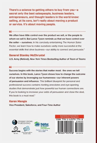The Human Sales Factor is a peek under the hood of Lance Tyson’s proven, predictable, scalable process—designed for sales leaders and their teams—yet still approachable and applicable for the person who just wants to open doors, win time off people’s calendars, and increase the chances of getting anything they want or need.