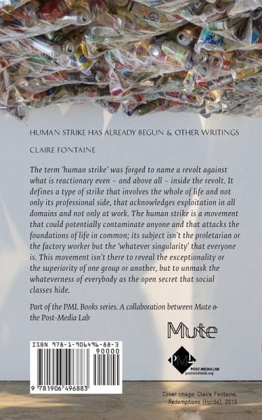 In this volume, passionate texts from the last decade by artist and theory collective Claire Fontaine are brought together with an extended concluding essay and foreword. Moving across militant, aesthetic and poetic registers these texts consider what resistance might look like in the age of human capital, where all dimensions of the self are infiltrated and conscripted by capital in its pursuit of value. Their answer is the human strike - a strike against the demands on the self imposed by power - in the interest of 'changing ourselves', becoming who we want to become. This strike has been happening all along, throughout history, but has today reached a peak of political consciousness. This book was commissioned to accompany the Post-Media Lab's 'The Subsumption of Sociality' research theme. Published by Mute Books and Post-Media Lab