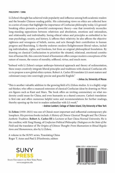 Li Zehou (1930-2021) was one of China's most important and influential contemporary philosophers. His previous books include A History of Chinese Classical Thought and The Chinese Aesthetic Tradition. Robert A. Carleo III is Lecturer at East China Normal University. He is the coeditor, with Yong Huang, of Confucian Political Philosophy: Dialogues on the State of the Field and the translator of The Origins of Chinese Thought: From Shamanism to Ritual Regulations and Humaneness, also by Li Zehou.