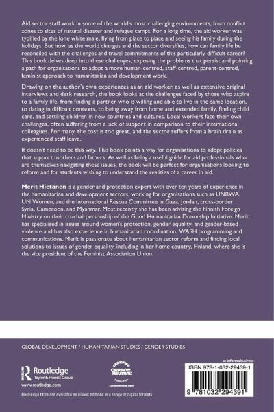 Aid sector staff work in some of the world's most challenging environments, from conflict zones to sites of natural disaster and refugee camps. For a long time, the aid worker was typified by the lone white male, flying from place to place and seeing his family during the holidays. But now, as the world changes and the sector diversifies, how can family life be reconciled with the challenges and travel commitments of this particularly difficult career? This book delves deep into these challenges, exposing the problems that persist and pointing a path for organisations to adopt a more human-centred, staff-centred, parent-centred, feminist approach to humanitarian and development work.