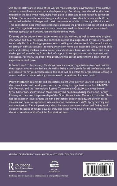 Introduction PART I The humanitarian workplace and what it does to parents 1 The work culture in a humanitarian workplace 2 Why is change necessary and how do we get there? PART II For the ones thinking about having children 3 Making a decision about having children 4 Childless not by choice and how to get out of it PART III Life of a parent in the aid sector 5 Mothers who work on national contracts 6 LGBTQIA+ parents 7 Single mothers 8 Trailing spouses or unemployed aid workers ¿9 Fathers 10 The humanitarian nannies: the dependency of aid parents on domestic staff PART IV A sector in change: where do we go next? 11 What have policies given us? 12 Making humanitarian contexts more compatible with parenthood 13 Parental leave: where are we and where should we go? 14 Office hours and flexible working arrangements: what needs to change? Epilogue