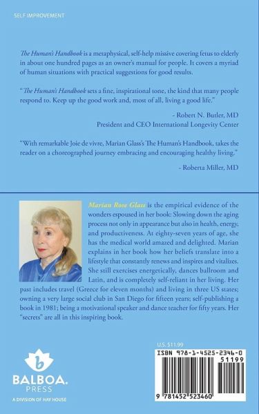 The Human's Handbook is a metaphysical, self-help missive covering fetus to elderly in about one hundred pages as an owner's manual for people. It covers a myriad of human situations with practical suggestions for good results. "The Human's Handbook sets a fine, inspirational tone, the kind that many people respond to. Keep up the good work and, most of all, living a good life." - Robert N. Butler, MD President and CEO International Longevity Center "With remarkable Joie de vivre, Marian Glass's The Human's Handbook, takes the reader on a choreographed journey embracing and encouraging healthy living." - Roberta Miller, MD