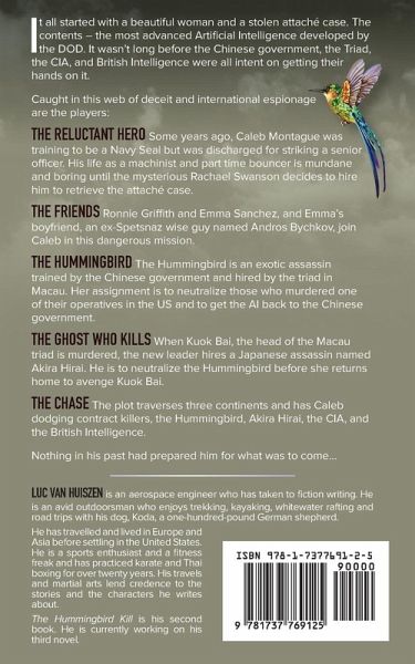It all started with a beautiful woman and a stolen attaché case. The contents - the most advanced Artificial Intelligence developed by the DOD. It wasn't long before the Chinese government, the Triad, the CIA, and British Intelligence were all intent on getting their hands on it. Caught in this web of international espionage are our hero, Caleb Montegue, and his friends as they try to retrieve the attaché case. The chase gets further complicated by the arrival of a Chinese assassin called the Hummingbird. Nothing in his past had prepared Caleb for what was to come...