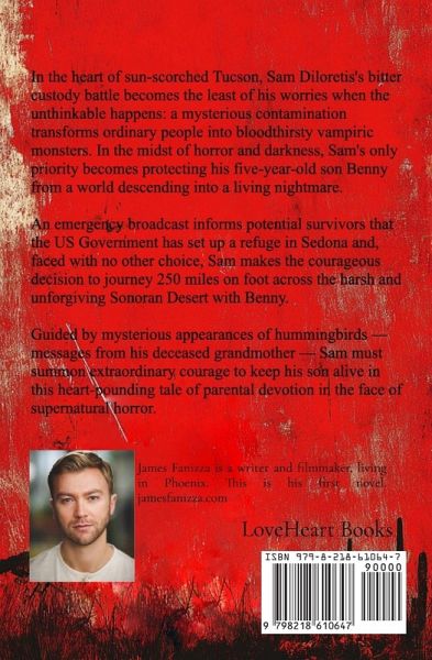 In the heart of sun-scorched Tucson, Sam Diloretis's bitter custody battle becomes the least of his worries when the unthinkable happens: a mysterious contamination transforms ordinary people into bloodthirsty vampiric monsters. In the midst of horror and darkness, Sam's only priority becomes protecting his five-year-old son Benny from a world descending into a living nightmare. An emergency broadcast informs potential survivors that the U S Government has set up a refuge in Sedona and, faced with no other choice, Sam makes the courageous decision to journey 250 miles on foot across the harsh and unforgiving Sonoran Desert with Benny. Guided by mysterious appearances of hummingbirds -- messages from his deceased grandmother -- Sam must summon extraordinary courage to keep his son alive in this heart-pounding tale of parental devotion in the face of supernatural horror.