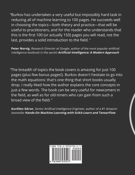Master machine learning through clarity, not complexity-in a book engineered to teach with exceptional conciseness. Translated into 11 languages and used in thousands of universities worldwide, this book takes a unique approach: it assumes that your time is valuable. Instead of drowning you in theory or skimming the surface, it delivers a complete education in modern machine learning, focusing on what matters in practice. From fundamental algorithms that form the backbone of many applications, to cutting-edge deep learning and neural networks, you'll understand how these tools work and how to use them. What sets this book apart is its careful progression through key concepts. You'll start with essential mathematical concepts and gradually progress through the most practically important machine learning algorithms. You'll learn practical skills like feature engineering, regularization, handling imbalanced datasets, ensembles, and model evaluation that help turn theory into working systems. The book covers not just supervised learning, but also clustering, topic modeling, metric learning, learning to rank, and recommendation systems, giving you a complete toolkit for solving modern machine learning challenges. This isn't just another theoretical textbook. Every chapter reflects the author's real-world experience, focusing on techniques that work in practice. Whether you're building a recommendation system, analyzing customer data, or working with images and text, you'll find practical guidance here. This isn't a high-level overview either. The book explores each concept with precisely the right level of technical detail-enough to create those crucial "a-ha!" moments of understanding, but not so much that you get overwhelmed by mathematical notation or theoretical abstractions. It hits that sweet spot where complex ideas click into place naturally, making it valuable for both newcomers looking to build a strong foundation and experienced practitioners seeking to expand their toolkit. What's Inside Supervised and unsupervised learning algorithms and neural networks Algorithm and math explained intuitively without losing important detail Practical techniques for model building, troubleshooting, and evaluation Advanced topics like ensembles, recommender systems, metric learning, and more About the Reader The book assumes a basic foundation in college-level mathematics. However, it's entirely self-contained, introducing all necessary mathematical concepts through intuitive explanations. This approach ensures that readers with basic mathematical knowledge can follow along without getting lost in complex equations. Endorsed by Peter Norvig, Research Director at Google, co-author of AIMA, the most popular AI textbook in the world, Aurélien Géron, Senior AI Engineer, author of the bestseller Hands-On Machine Learning with Scikit-Learn, Keras, and TensorFlow, and other industry leaders. Read endorsements on themlbook.com