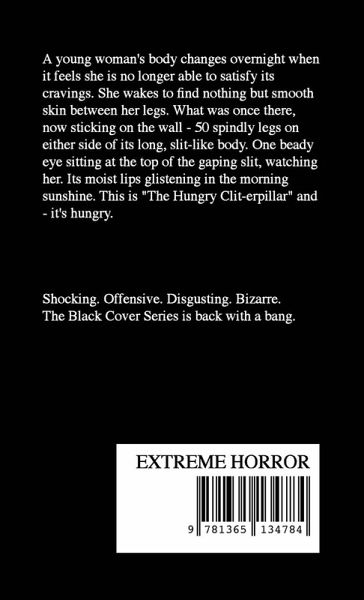 A young woman's body changes overnight when it feels she is no longer able to satisfy its cravings. She wakes to find nothing but smooth skin between her legs. What was once there, now sticking on the wall - 50 spindly legs on either side of its long, slit-like body. One beady eye sitting at the top of the gaping slit, watching her. Its moist lips glistening in the morning sunshine. This is "The Hungry Clit-erpillar" and - it's hungry. Shocking. Offensive. Disgusting. Bizarre.The Black Cover Series is back with a bang.