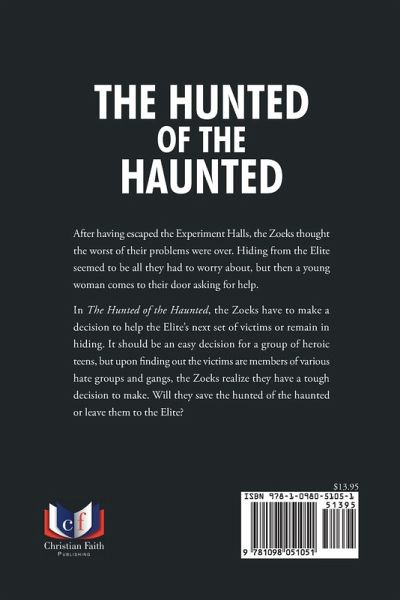 After having escaped the Experiment Halls, the Zoeks thought the worst of their problems were over. Hiding from the Elite seemed to be all they had to worry about, but then a young woman comes to their door asking for help. In The Hunted of the Haunted, the Zoeks have to make a decision to help the Elite's next set of victims or remain in hiding. It should be an easy decision for a group of heroic teens, but upon finding out the victims are members of various hate groups and gangs, the Zoeks realize they have a tough decision to make. Will they save the hunted of the haunted or leave them to the Elite?
