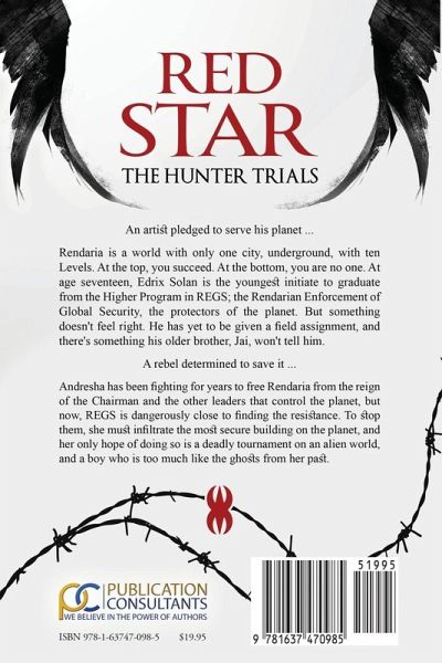 An artist pledged to serve his planet ... Rendaria is a world with only one city, underground, with ten Levels. At the top, you succeed. At the bottom, you are no one. At age seventeen, Edrix Solan is the youngest initiate to graduate from the Higher Program in REGS; the Rendarian Enforcement of Global Security, the protectors of the planet. But something doesn't feel right. He has yet to be given a field assignment, and there's something his older brother, Jai, won't tell him. A rebel determined to save it ... Andresha has been fighting for years to free Rendaria from the reign of the Chairman and the other leaders that control the planet, but now, REGS is dangerously close to finding the resistance. To stop them, she must infiltrate the most secure building on the planet, and her only hope of doing so is a deadly tournament on an alien world, and a boy who is too much like the ghosts from her past.