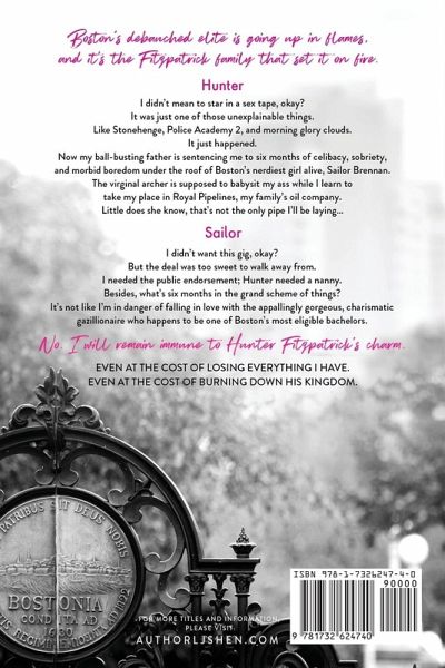 Hunter I didn’t mean to star in a sex tape, okay? It was just one of those unexplainable things. Like Stonehenge, Police Academy 2, and morning glory clouds. It just happened. Now my ball-busting father is sentencing me to six months of celibacy, sobriety, and morbid boredom under the roof of Boston’s nerdiest girl alive, Sailor Brennan. The virginal archer is supposed to babysit my ass while I learn to take my place in Royal Pipelines, my family’s oil company. Little does she know, that’s not the only pipe I’ll be laying… Sailor I didn’t want this gig, okay? But the deal was too sweet to walk away from. I needed the public endorsement; Hunter needed a nanny. Besides, what’s six months in the grand scheme of things? It’s not like I’m in danger of falling in love with the appallingly gorgeous, charismatic gazillionaire who happens to be one of Boston’s most eligible bachelors. No. I will remain immune to Hunter Fitzpatrick’s charm. Even at the cost of losing everything I have. Even at the cost of burning down his kingdom.