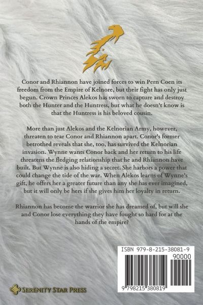 The war must end and Rhiannon must fight for the life she dreams of. Conor and Rhiannon have joined forces to win Pern Coen its freedom from the Empire of Kelnore, but their fight has only just begun. Crown Princes Alekos has sworn to capture and destroy both the Hunter and the Huntress, but what he doesn't know is that the Huntress is his beloved cousin. More than just Alekos and the Kelnorian Army, however, threaten to tear Conor and Rhiannon apart. Conor's former betrothed reveals that she, too, has survived the Kelnorian invasion. Wynne wants Conor back and her return to his life threatens the fledging relationship that he and Rhiannon have built. But Wynne is also hiding a secret. She harbors a power that could change the tide of the war. When Alekos learns of Wynne's gift, he offers her a greater future than any she has ever imagined, but it will only be hers if she gives him her loyalty in return. Rhiannon has become the warrior she has dreamed of, but will she and Conor lose everything they have fought so hard for at the hands of the empire? This Celtic inspired romantic fantasy features Robin Hood vibes, elaborate worldbuilding, mythical lore, a broody outlaw king, a lost heir, found family, and an enemies to lovers, slow burn, low spice romance.