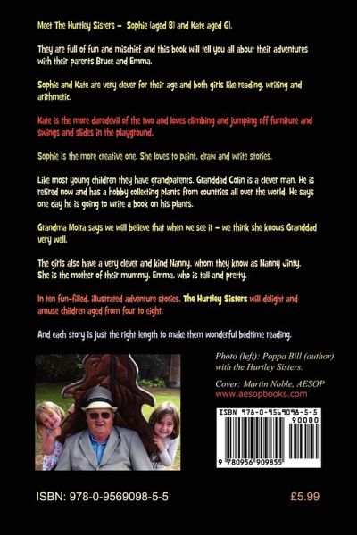 Meet The Hurtley Sisters - Sophie (aged 8) and Kate aged 6). They are full of fun and mischief and this book will tell you all about their adventures with their parents Bruce and Emma. Sophie and Kate are very clever for their age and both girls like reading, writing and arithmetic. Kate is the more daredevil of the two and loves climbing and jumping off furniture and swings and slides in the playground, Sophie is the more creative one. She loves to paint, draw and write stories. Like most young children they have grandparents. Granddad Colin is a clever man. He is retired now and has a hobby collecting plants from countries all over the world. He says one day he is going to write a book on his plants. Grandma Moira says we will believe that when we see it - we think she knows Granddad very well. In ten fun-filled, illustrated adventure stories, The Hurtley Sisters will delight and amuse children aged from four to eight. And each story is just the right length to make them wonderful bedtime reading.