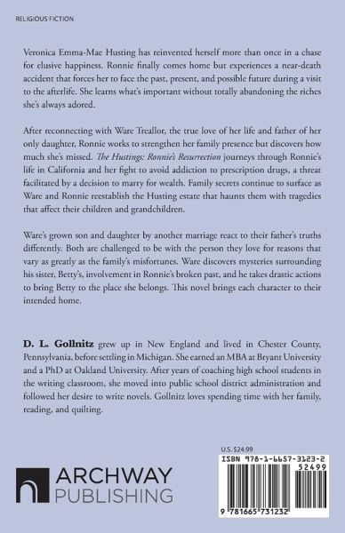 Veronica Emma-Mae Husting has reinvented herself more than once in a chase for elusive happiness. Ronnie finally comes home but experiences a near-death accident that forces her to face the past, present, and possible future during a visit to the afterlife. She learns what's important without totally abandoning the riches she's always adored. After reconnecting with Ware Treallor, the true love of her life and father of her only daughter, Ronnie works to strengthen her family presence but discovers how much she's missed. The Hustings: Ronnie's Resurrection journeys through Ronnie's life in California and her fight to avoid addiction to prescription drugs, a threat facilitated by a decision to marry for wealth. Family secrets continue to surface as Ware and Ronnie reestablish the Husting estate that haunts them with tragedies that affect their children and grandchildren. Ware's grown son and daughter by another marriage react to their father's truths differently. Both are challenged to be with the person they love for reasons that vary as greatly as the family's misfortunes. Ware discovers mysteries surrounding his sister, Betty's, involvement in Ronnie's broken past, and he takes drastic actions to bring Betty to the place she belongs. This novel brings each character to their intended home.