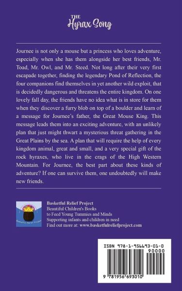 What Can Possibly Stop an Army of Millions? Journee is not only a mouse but a princess who loves adventure, especially when she has them alongside her best friends, Mr. Toad, Mr. Owl, and Mr. Steed. Not long after their very first escapade together, finding the legendary Pond of Reflection, the four companions find themselves in yet another wild exploit, that is decidedly dangerous and threatens the entire kingdom. On one lovely fall day, the friends have no idea what is in store for them when they discover a furry blob on top of a boulder, a rock hyrax, and learn of a message for Journee's…mehr