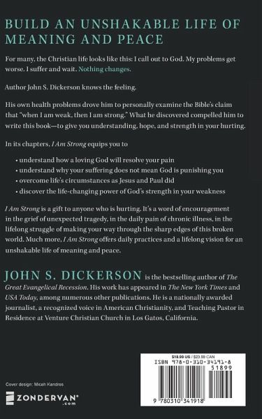 Your deepest pain, your ongoing suffering, your unanswered prayers. Could these difficulties become your greatest strengths? Author John S. Dickerson points to life experience and Scripture to say, "Yes!" Studying the verse "when I am weak, then I am strong," learn how to transform your weakness into strength, unlocking God's power in your life.