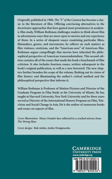 The 'I' of the Camera has become a classic in the literature of film. Offering alternatives to the viewing and criticism of film, William Rothman challenges readers to think about film in adventurous ways that are more open to movies and our experience of them. In a series of eloquent essays examining particular films, filmmakers, genres and movements, and the 'Americanness' of American film, Rothman argues compellingly that movies have inherited the philosophical perspective of American transcendentalism. This second edition contains all of the essays that made the book a benchmark of film criticism. It also includes fourteen essays, written subsequent to the book's original publication, as well as a new foreword. The new chapters further broaden the scope of the volume, fleshing out its vision of film history and illuminating the author's critical method and the philosophical perspective that informs it.