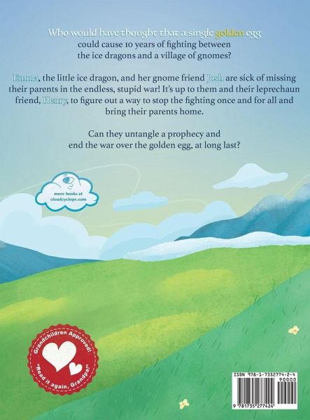 Who would have thought that a single golden egg could cause 10 years of fighting between the ice dragons and a village of gnomes? Emma, the little ice dragon, and her gnome friend Josh are sick of missing their parents in the endless, stupid war! It's up to them and their leprechaun friend, Henry, to figure out a way to stop the fighting once and for all and bring their parents home. Can they untangle a prophecy and end the war over the golden egg, at long last?
