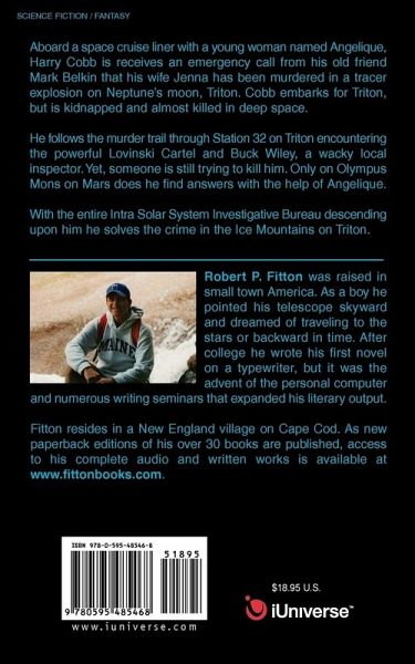 Aboard a space cruise liner with a young woman named Angelique, Harry Cobb is receives an emergency call from his old friend Mark Belkin that his wife Jenna has been murdered in a tracer explosion on Neptune's moon, Triton. Cobb embarks for Triton, but is kidnapped and almost killed in deep space. He follows the murder trail through Station 32 on Triton encountering the powerful Lovinski Cartel and Buck Wiley, a wacky local inspector. Yet, someone is still trying to kill him. Only on Olympus Mons on Mars does he find answers with the help of Angelique. With the entire Intra Solar System Investigative Bureau descending upon him he solves the crime in the Ice Mountains on Triton.