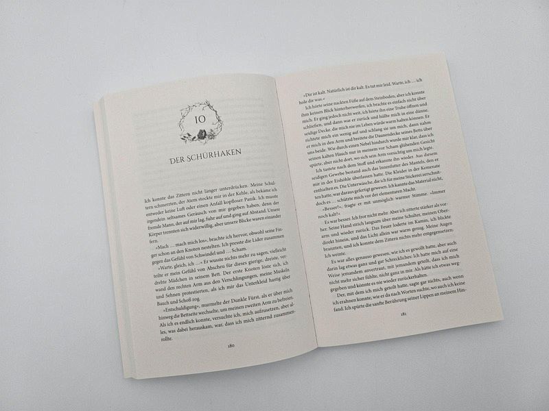 Izras Kink, der ja an sich kein Problem ist, nimmt einen großen Teil der Story ein, so dass andere Dinge in den Hintergrund geraten. Sie ist impulsiv, naiv und leicht beeinflussbar, so dass ich über ihre Entscheidungen oft die Augen verdreht habe. Die Lovestory bleibt oberflächlich und konnte mich nur wenig berühren. Mir fehlen die echten und tiefen Emotionen, die ich noch am ehesten beim Dunklen Fürsten gesehen habe.