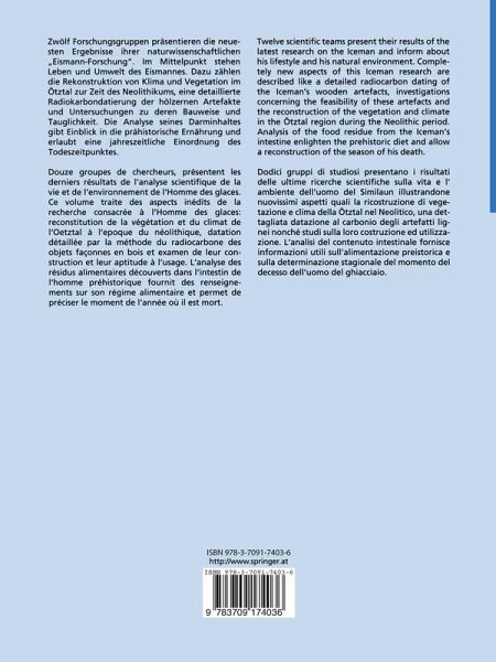 Before the discovery of the "Man in the Ice" in temporal context. On the other hand the reconstruc tion of the Iceman's life-style as derived from data September 1991, little was known about the Neolithic obtained from the site has to be correlated with inde period in the Central Alps. Suddenly and without precedent, here was the very well preserved corpse of pendent data sets. For that purpose pollen analysis was a man who had lived more than 5,000 years ago with his performed on peat-bogs in the vicinity of the find and clothing and equipment almost intact. The discovery further afield to obtain precise data on the vegetation was not just deservedly a world-wide sensation but a cover and climate in the Neolithic. Pollen analysis was unique opportunity for the scientific community to in performed for a vertical transect extending from the vestigate the life and death of a human from such very timber line almost up to the nival zone. The results of ancient times. It opened up wholly new horizons in the analyses reveal changes to the vegetation patterns prehistoric research, and with the help of a full range caused by pastoral farming long before the time of the of modern research techniques an attempt was made Iceman.
