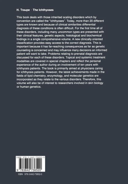 It is a great pleasure for me to see this work in print. As outlined by Dr. Traupe, at least 20 different types of ichthyosis have been identified to date. This book will effectively help to establish a correct diagnosis, as a basis for genetic counseling. Dr. Traupe proposes a new classification of the ichthyoses, based on reason able clinical criteria. He lets the reader share in his enormous knowledge and safely guides him through the difficult field of nomenclature. He describes the particular nature of these scaling disorders in a manner as simple as possible. During the last few years, research on ichthyosis has become a fascinating scientific challenge due to the introduction of novel investigative approaches. The main advantage of this book lies in the fact that the author successfully combines recent achievements made in lipid analysis, enzymology, electron microscopy, and molecular genetics. Heiko Traupe began his career in dermatology 11 years ago, as a resident in theDepartment of Dermatology in Munster. As we were both interested in the genetic aspects of skin diseases, this was the starting point of a most fruitful collaboration, which is still continuing. During our common work in Munster, Dr. Traupe was able, thanks to his unceasing clinical curiosity, to describe many novel aspects within the field of ichthyosis, and I took pride in coauthoring papers on new items such as cryptorchidism as a fea ture associated with X-linked recessive ichthyosis, autosomal dominant lamellar ichthyosis, and alopecia ichthyotica.