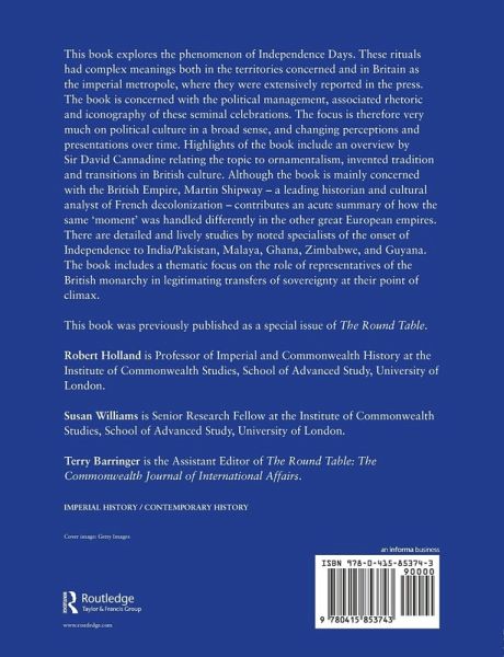 This book explores the phenomenon of Independence Days. These rituals had complex meanings both in the territories concerned and in Britain as the imperial metropole, where they were extensively reported in the press. The text is concerned with the political management, associated rhetoric and iconography of these seminal celebrations. The focus is therefore very much on political culture in a broad sense, and changing perceptions and presentations over time. Highlights of the book include an overview by David Cannadine relating the topic to ornamentalism, invented tradition and transitions in British culture. Although the book is mainly concerned with the British Empire, Martin Shipway - a leading historian and cultural analyst of French decolonization - contributes an acute summary of how the same 'moment' was handled differently in the other great European empires. There are detailed and lively studies by noted specialists of the immediate coming of Independence to India/Pakistan, Malaya, Ghana, Zimbabwe, and Guyana. The book includes a thematic focus on the important role of representatives of the British monarchy in legitimating transfers of sovereignty at their point of climax. This book was published as a special issue of The Round Table.