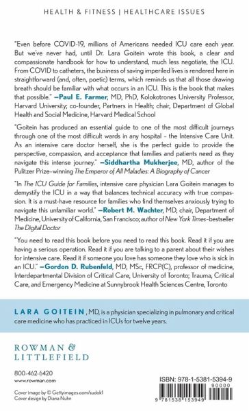 ICU events are not uncommon but knowing what to do when a loved one is placed there is. This work explores the ICU with an eye toward guiding families to getting the best care for their beloved patient Intensive care will touch almost all of us at some point - whether directly, or through our families and or friends. This book is for every family of patients in the ICU, who have suddenly entered an intimidating and alien world, in which they feel powerless and out of control. In simple, direct language, Lara Goitein, MD, gives clear explanations of all aspects of intensive care - what all those lines and tubes are; common conditions such as sepsis and acute respiratory distress syndrome (ARDS); physical changes in patients and what they mean; common procedures and their risks and benefits; and the people and the culture of the ICU. One full section of the book is devoted to Covid-19-specific issues. In addition, the book provides concrete advice for how family members can be effective advocates on behalf of their loved ones -what to know before giving consent for procedures, how to interact with ICU staff, how to help the ICU team guard against common complications of ICU care, and how to approach important decisions about end-of-life care. Along the way, the author gently reminds of us of what, in the end, matters most in the ICU. For readers who may be distracted and exhausted, this is a clear, accessible guide with concrete recommendations for getting the best care and asking the right questions along the way. A compassionate resource in a time of extreme stress, this book offers support to anyone touched by an ICU stay.