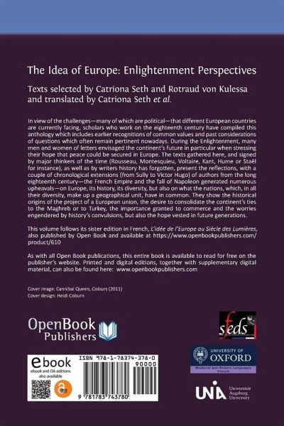 In view of the challenges-many of which are political-that different European countries are currently facing, scholars who work on the eighteenth century have compiled this anthology which includes earlier recognitions of common values and past considerations of questions which often remain pertinent nowadays. During the Enlightenment, many men and women of letters envisaged the continent's future in particular when stressing their hope that peace could be secured in Europe. The texts gathered here, and signed by major thinkers of the time (Rousseau, Montesquieu, Voltaire, Kant, Hume or Staël for instance), as well as by writers history has forgotten, present the reflections, with a couple of chronological extensions (from Sully to Victor Hugo) of authors from the long eighteenth century-the French Empire and the fall of Napoleon generated numerous upheavals-on Europe, its history, its diversity, but also on what the nations, which, in all their diversity, make up a geographical unit, have in common. They show the historical origins of the project of a European union, the desire to consolidate the continent's ties to the Maghreb or to Turkey, the importance granted to commerce and the worries engendered by history's convulsions, but also the hope vested in future generations. The Idea of Europe follows its sister edition in French, L'idée de l'Europe au Siècle des Lumières, also published by Open Book.