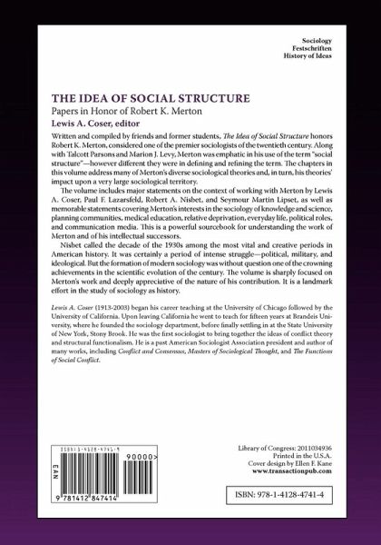 Written and compiled by friends and former students, The Idea of Social Structure honors Robert K. Merton, considered one of the premier sociologists of the twentieth century. Along with Talcott Parsons and Marion J. Levy, Merton was emphatic in his use of the term "social structure"-however different they were in defining and refining the term. The chapters in this volume address many of Merton's diverse sociological theories and, in turn, his theories' impact upon a very large sociological territory. The volume includes major statements on the context of working with Merton by Lewis A. Coser, Paul F. Lazarsfeld, Robert A. Nisbet, and Seymour Martin Lipset, as well as memorable statements covering Merton's interests in the sociology of knowledge and science, planning communities, medical education, relative deprivation, everyday life, political roles, and communication media. This is a powerful sourcebook for understanding the work of Merton and of his intellectual successors. Nisbet called the decade of the 1930s among the most vital and creative periods in American history. It was certainly a period of intense struggle-political, military, and ideological. But the formation of modern sociology was without question one of the crowning achievements in the scientific evolution of the century. The volume is sharply focused on Merton's work and deeply appreciative of the nature of his contribution. It is a landmark effort in the study of sociology as history.