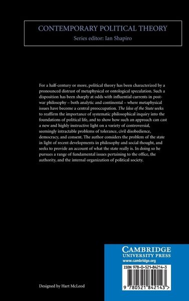 For a half-century or more, political theory has been characterized by a pronounced distrust of metaphysical or ontological speculation. Such a disposition has been sharply at odds with influential currents in post-war philosophy - both analytic and continental - where metaphysical issues have become a central preoccupation. The Idea of the State seeks to reaffirm the importance of systematic philosophical inquiry into the foundations of political life, and to show how such an approach can cast a new and highly instructive light on a variety of controversial, seemingly intractable problems of tolerance, civil disobedience, democracy and consent. The author considers the problem of the state in light of recent developments in philosophy and social thought, and seeks to provide an account of what the state really is. In doing so he pursues a range of fundamental issues pertaining to the office, the authority and the internal organization of political society.