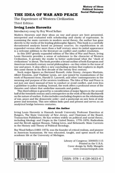 Modern theorists and their ideas on war and peace are here presented, interpreted, and evaluated with scholarship and clarity of expression. In examining the main currents in modern social theory, the author has gone directly to the works of the leading philosophic figures. This book is a carefully documented analysis based on primary sources. Its republication in an expanded version after more than a half century since its initial appearance is a welcome addition to the literature on conflict and conflict resolution. In this 2007 greatly expanded third edition of The Idea of War and Peace, Irving Louis Horowitz provides a sense of substance to the character of Western Civilization. The book permits the reader to better understand what the "clash of civilizations" is about. It provides a broad outline of both European and American twentieth century social philosophies as they relate to the issue of war and peace. It also offers a new concluding section that explores in depth this same theme in the first decade of the twenty-first century. Such major figures as Bertrand Russell, John Dewey, Jacques Maritain, Albert Einstein, and Vladimir Lenin, reviewed in earlier editions, are now joined by examinations of the work of Raymond Aron, Harold D. Lasswell, and other contemporaries. The Idea of War and Peace is not just one more manual of how to conduct or avoid conflict, and even less, a guideline to policy-making. Instead, the work offers a profound sense of the theories and values that underline manuals and guides. This third edition is graced by a consideration of major figures in the second half of the twentieth century and a retrospective on the work of Niccolo Machiavelli on the nature of warfare. It also includes chapters on the relationship of war, peace, and the democratic order--and a postscript on new forms of state power and terrorism. This new edition links past and present and serves as an analytical bridge between centuries.