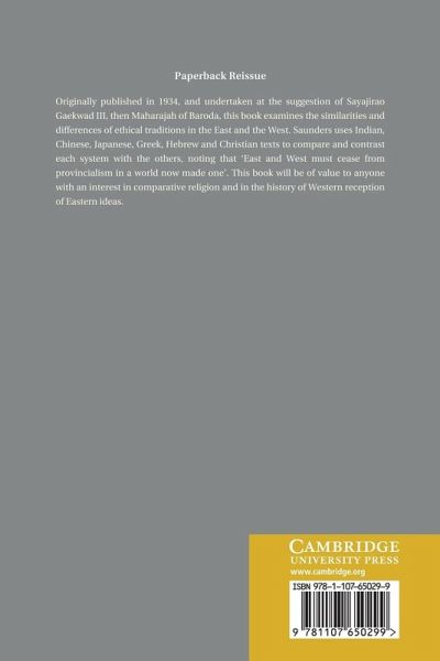 Originally published in 1934, and undertaken at the suggestion of Sayajirao Gaekwad III, then Maharajah of Baroda, this book examines the similarities and differences of ethical traditions in the East and the West. Saunders uses Indian, Chinese, Japanese, Greek, Hebrew and Christian texts to compare and contrast each system with the others, noting that 'East and West must cease from provincialism in a world now made one'. This book will be of value to anyone with an interest in comparative religion and in the history of Western reception of Eastern ideas.
