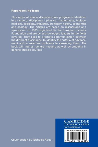 This series of essays discusses how progress is identified in a range of disciplines - physics, mathematics, biology, medicine, sociology, linguistics, art history, history, economics and ecology.