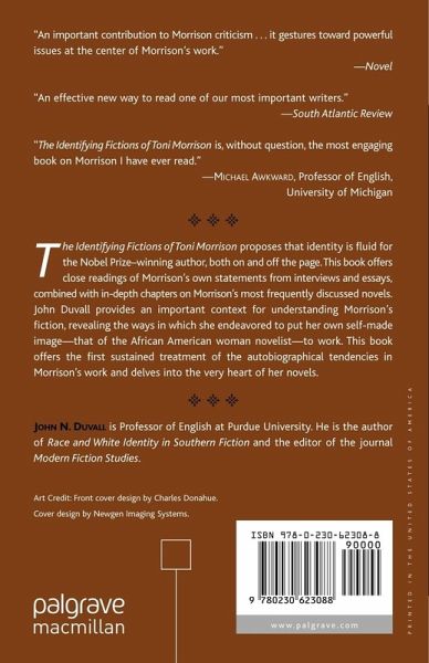 Now available in a new paperback edition, The Identifying Fictions of Toni Morrison examines Morrison's hugely influential fiction, criticism, and interviews for traces of her struggle to construct a useable identity as an African American woman novelist. The only book to explore autobiographical tendencies in Morrison's fiction, Duvall's study: -Provides in-depth chapters on Morrison's most frequently taught novels -Uses Morrison's own words from interviews and essays as an important context for understanding her fiction -Traces Morrison's critical engagement with modernist writers, particularly William Faulkner, Virginia Woolf, and Ralph Ellison In a new Afterword, Duvall discusses Morrison's two most recent novels, Love and A Mercy, in the context of the author's recent disclosures about her Catholicism.
