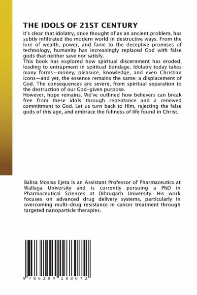 It's clear that idolatry, once thought of as an ancient problem, has subtly infiltrated the modern world in destructive ways. From the lure of wealth, power, and fame to the deceptive promises of technology, humanity has increasingly replaced God with false gods that neither save nor satisfy.This book has explored how spiritual discernment has eroded, leading to entrapment in spiritual bondage. Idolatry today takes many forms-money, pleasure, knowledge, and even Christian icons-and yet, the essence remains the same: a displacement of God. The consequences are severe, from spiritual separation to the destruction of our God-given purpose.However, hope remains. We've outlined how believers can break free from these idols through repentance and a renewed commitment to God. Let us turn back to Him, rejecting the false gods of this age, and embrace the fullness of life found in Christ.