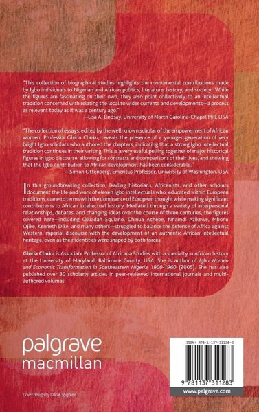 'This collection of essays, edited by the well-known scholar of the empowerment of African women, Professor Gloria Chuku, consists of eleven biographies of well-known Igbos from Nigeria. It includes the intellectual contributions of Oluadah Equiano, the politicians Nnamdi Azikiwe and Mbonu Ojike, the historians Kenneth Onwuka Dike and Adiele Afigbo, the novelists Chinua Achebe and Flora Nwapa, and the economist Pius Okigbo, among others. In each case we are shown how they dealt with problems from the pressures ofcolonialism and western culture in regards to their Igbo and Nigerian backgrounds. The collection reveals the presence of a younger generation of very bright Igbo scholars who authored the chapters, indicating that a strong Igbo intellectual tradition continues in their writing. This is a very useful pulling together of major historical figures in Igbo discourse, allowing for contrasts and comparisons of their lives, and showing that the Igbo contribution to African development has been considerable.' - Simon Ottenberg, Emeritus Professor, University of Washington, USA