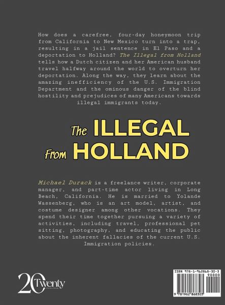 How does a carefree, four-day honeymoon trip from California to New Mexico turn into a trap, resulting in a jail sentence in El Paso and a deportation to Holland? The Illegal from Holland tells how a Dutch citizen and her American husband travel halfway around the world to overturn her deportation. Along the way, they learn about the amazing inefficiency of the U.S. Immigration Department and the ominous danger of the blind hostility and prejudices of many Americans towards illegal immigrants today. Michael Durack is a freelance writer, corporate manager, and part-time actor living in Long Beach, California. He is married to Yolande Wassenberg, who is an art model, artist, and costume designer among other vocations. They spend their time together pursuing a variety of activities, including travel, professional pet sitting, photography, and educating the public about the inherent fallacies of the current U.S. Immigration policies.