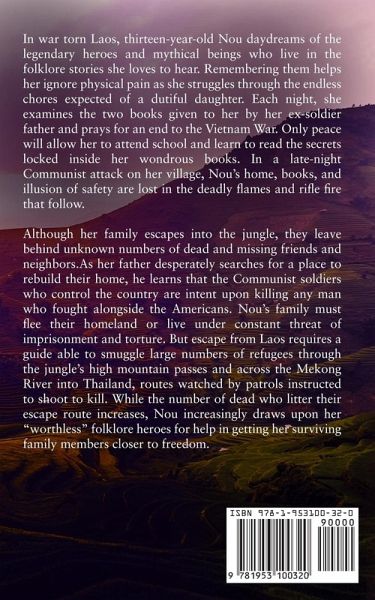 In war torn Laos, thirteen-year-old Nou daydreams of the legendary heroes and mythical beings who live in the folklore stories she loves to hear. Remembering them helps her ignore physical pain as she struggles through the endless chores expected of a dutiful daughter. Each night, she examines the two books given to her by her ex-soldier father and prays for an end to the Vietnam War. Only peace will allow her to attend school and learn to read the secrets locked inside her wondrous books. In a late-night Communist attack on her village, Nou's home, books, and illusion of safety are lost in the deadly flames and rifle fire that follow. Although her family escapes into the jungle, they leave behind unknown numbers of dead and missing friends and neighbors. ¿As her father desperately searches for a place to rebuild their home, he learns that the Communist soldiers who control the country are intent upon killing any man who fought alongside the Americans. Nou's family must flee their homeland or live under constant threat of imprisonment and torture. But escape from Laos requires a guide able to smuggle large numbers of refugees through the jungle's high mountain passes and across the Mekong River into Thailand, routes watched by patrols instructed to shoot to kill. While the number of dead who litter their escape route increases, Nou increasingly draws upon her "worthless" folklore heroes for help in getting her surviving family members closer to freedom.