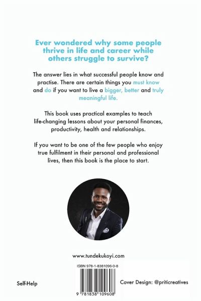 Ever wondered why some people thrive in life and career while others struggle to survive? The answer lies in what successful people know and practise. There are certain things you must know and do if you want to live a bigger, better and truly meaningful life. This book uses practical examples to teach life-changing lessons about your personal finances, productivity, health and relationships. If you want to be one of the few people who enjoy true fulfilment in their personal and professional lives, then this book is the place to start.