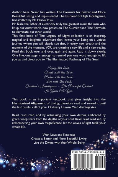 Nikola Tesla Speaks. Author Ivana Nesco has written The Formula for Better and More Beautiful Living, and implemented The Current of High Intelligence, transmitted by Mr. Nikola Tesla. Mr. Tesla, the father of electricity, truly the greatest mind, the man who lit up our outer world, now passes on The Current and The Formula to illuminate our inner world. This first book of The Legacy of Light collection is an inspiring, magical, and delightful adventure that invites your Being on a unique journey where you will clearly see that, in every new breath and the moment of the moment, YOU are creating a new life and a new reality.