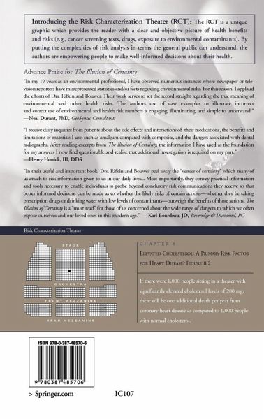 "The aim is principally to assist the public in comprehending and interpreting health benefit and risk information, and provide them with the basic methods that will allow them to make their own judgements. ... A significant feature of the book is the introduction of a new way of assisting the reader to conceptualise the absolute risk or benefit to an individual. ... It could be used as a reference book by a member of the public ... ." (Roy Mooney, SCOPE, June, 2008)