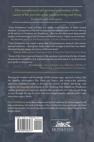 Clare Goldsberry is a life-long student of religion and a spiritual seeker who has embraced an eclectic form of theology that spans the ages from Hinduism and Buddhism, to the philosophies of the Ancient Wisdom teachers and forward to the science of quantum physics. Her journey also included working with elderly people and those suffering from illness, and whose beliefs and fears about dying and death often cause grave suffering. After helping her significant other, Brent go through eighteen months of living with and eventually dying from esophageal cancer, she wanted to share not only his story of fearless living and graceful dying, but to include the broader picture of what living fearlessly and dying gracefully means for all of us. As a Hospice volunteer for two years after Brent's death she became acutely aware of just how important it is not only for the dying person to understand living and dying but for the person's family as well. She is the author of two previous books: A Stranger in Zion: The Theology, Psychology and Sociology of Utah Mormonism, which won the 2001 Arizona Book Publishers Award for Best Religion Book, and The Teacher Within: Finding and Living Your Personal Truth.