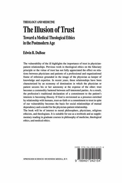 This book is about trust and its implications for a medical theological ethics. Beginning with its earliest work, there has been attention to trust running through the bioethics literature in the United States, and much of this discussion has examined its theological elements. Clearly, trust is indispensable when describing the patient-physician relationship, so why is there a need for yet another study? There is no doubt that people generally trust physicians. Traditionally the physician is the patient's fiduciary agent, whose sole obligation is to act only in the patient's best interest. In recent times, however, there is a perception on the part of people within and without health care that physicians have other obligations that compete with their obligation to the patient. If we acknowledge that one price for the successes of technological biomedicine is high in terms of financial cost, another price of Sllccess seems to be distrust, cynicism, and suspicion directed by the public toward the medical profes sion. If this uneasiness is the price society pays for medical success, what is the price of success for the doctor? Because of their role within the social order, physicians have claimed and been granted autonomy, authority, and special status. In return, the profes sion has pledged to serve the well-being and interests of humankind. This fiduciary commitment becomes a taken-for-granted aspect of the physician's identity, both for the physician for whom this dedication is definitional and for the public which expects trustworthy service from this person.