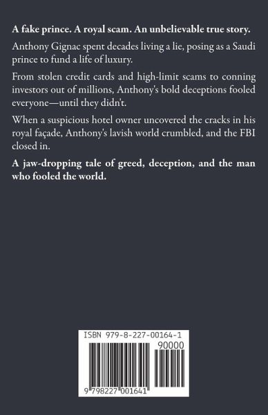 A fake prince. A royal scam. An unbelievable true story. Anthony Gignac spent decades living a lie, posing as a Saudi prince to fund a life of luxury. From stolen credit cards and high-limit scams to conning investors out of millions, Anthony's bold deceptions fooled everyone-until they didn't. When a suspicious hotel owner uncovered the cracks in his royal façade, Anthony's lavish world crumbled, and the FBI closed in. A jaw-dropping tale of greed, deception, and the man who fooled the world.