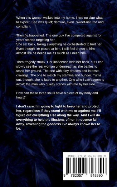 If only her innocence could outshine the chaos and deception of our world. When this woman walked into my home, I had no clue what to expect. She was quiet; demure, even. Sweet-natured and compliant. Then he happened. The one guy I've competed against for years started targeting her. She sat back, taking everything he arranged to hurt her. Even though I'm pissed at him, I still feel drawn to him. Almost like he needs me as much as I need him. Then tragedy struck. Her innocence held her back, but I can slowly see the real woman underneath as she battles to stand her ground. The one with dirty dreams and intense needs. The one to match my stamina and hunger. Turns out, though, she is fated to another. One who I can't seem to avoid; the man who quietly stands with me by her side. How can these three souls have a piece of my body and heart? I don't care. I'm going to fight to keep her and protect her, regardless if they stand with me or against me. I'll figure out everything else along the way. And I will do everything to help the illusions of her innocence fall away, revealing the goddess I've always known her to be.